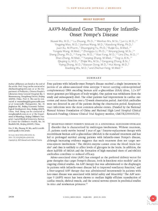 kaiyun平臺官網(wǎng)登錄 開云網(wǎng)站近日,總醫(yī)院第七醫(yī)學(xué)中心封志純教授團(tuán)隊(duì)聯(lián)合多家單位研發(fā)的全球首款嬰兒型龐貝病基因治療藥物臨床研究成果,以原創(chuàng)論著形式發(fā)表于國際頂級醫(yī)學(xué)期刊《新英格蘭醫(yī)學(xué)雜志》(NEJM,2024年影響因子98.2),標(biāo)志...